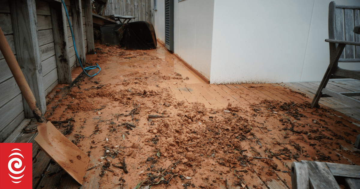 Mud and debris outside a home in Ōakura.